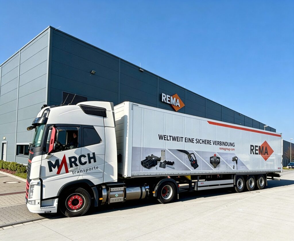 Mit diesem Fahrzeug unserer Partnerspedition March bringen wir nicht nur unsere Produkte auf die Straße – wir zeigen auch, für welche Eigenschaften REMA steht: dynamisch, flexibel, schnell, zuverlässig und nachhaltig.